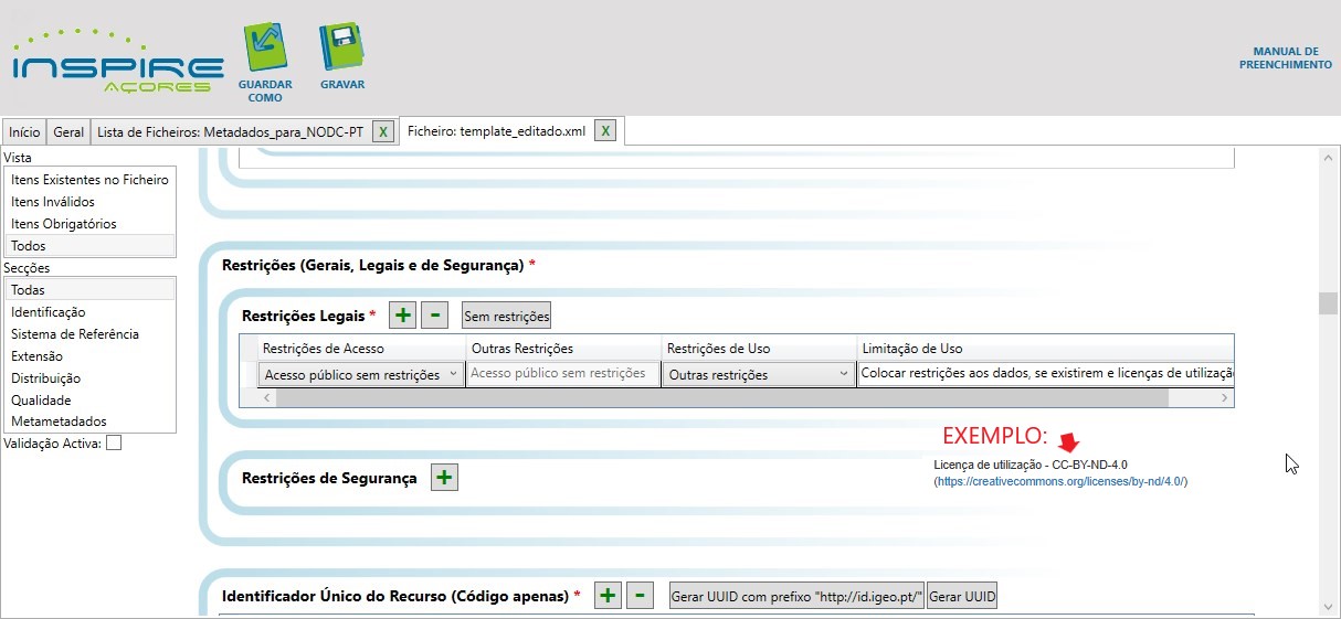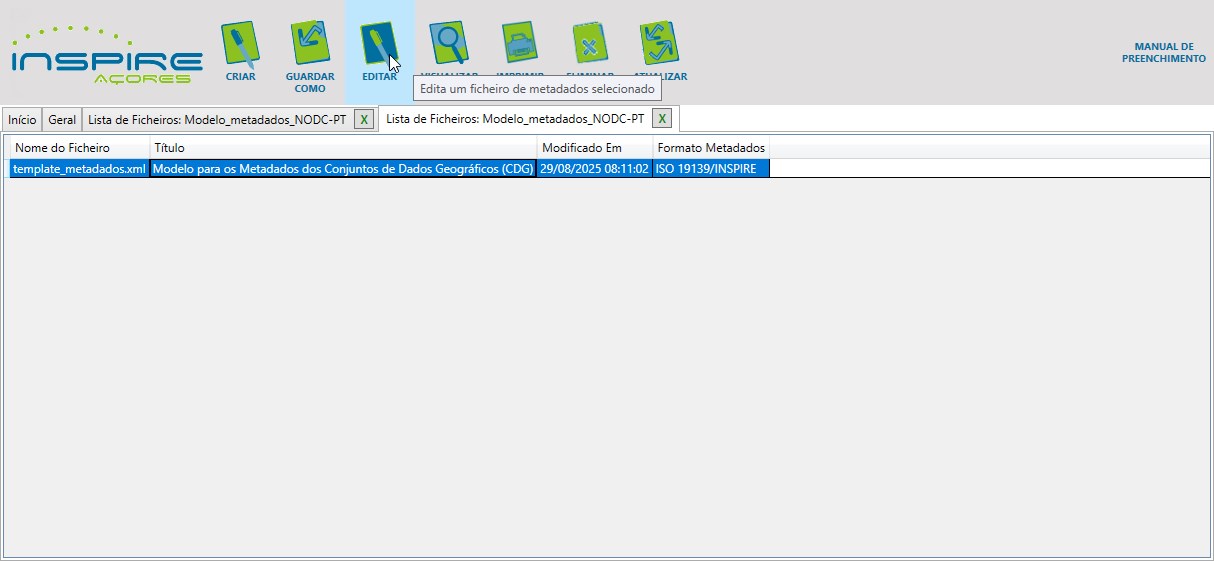1. Copiar o Template Original: Localize o ficheiro template_metadados.xml e copie esse ficheiro para uma pasta no seu computador onde irá trabalhar.