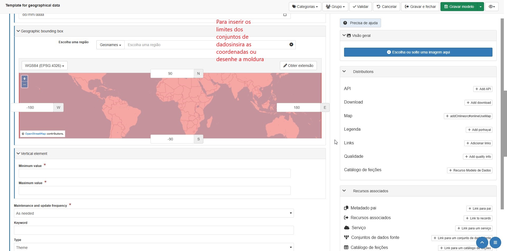 Para a criação de metadados no GeMA também é usado o "Modelo para os Metadados dos Conjuntos de Dados Geográficos (CDG)" que será editado. Para isso deverá: