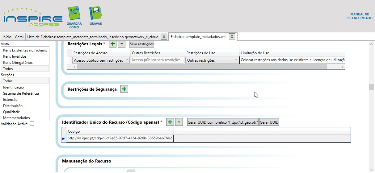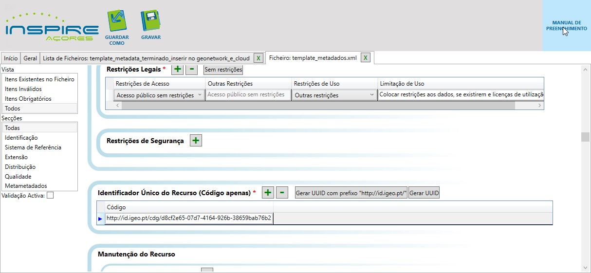 1. Copiar o Template Original: Localize o ficheiro template_metadados.xml e copie esse ficheiro para uma pasta no seu computador onde irá trabalhar.